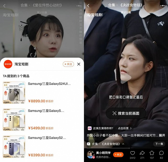 一方面是品牌资源优势,当前站内很多品牌短剧,都是淘宝牵头品牌和MCN完成的。而且从当前的合作情况判断,对短剧更谨慎的一线品牌对淘宝有很强的信任基础,海蓝之谜、三星、修丽可等品牌均在淘宝上推出了短剧内容。