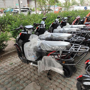 “这就等于是电摩,一出厂就没有脚蹬子。”这款车在脚踏板、车座下分别有一个电池仓。“这两个可以同时放电池。下面是用螺丝拧紧的,上面好拿好卸,换电方便。这个仓大,48伏、60伏、72伏的都可以,通用的。”