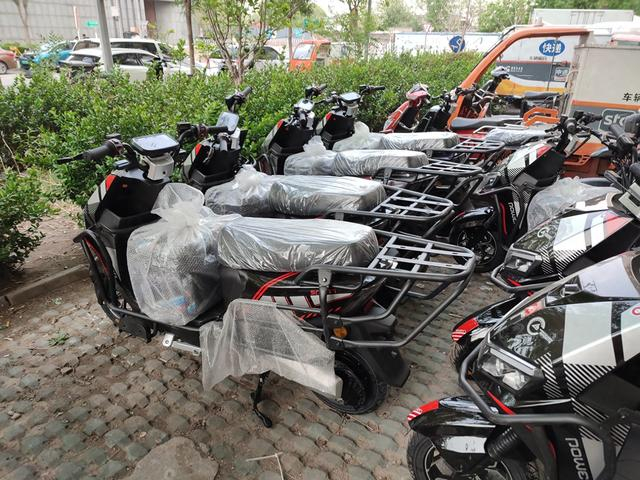 记者联系另一名线上销售人员,根据提示来到北四环附近。一名销售人员带领记者行走一段路程,到达街道尽头。在街边非机动车停放区域,停着多辆待售的全新、二手电动车。