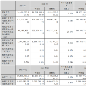 挖贝网4月30日,万向钱潮近日发布2023年年度报告,报告期内公司实现营业收入14,486,808,920.82元,同比增长3.37%;归属于上市公司股东的净利润821,520,182.86元,同比增长1.54%。
