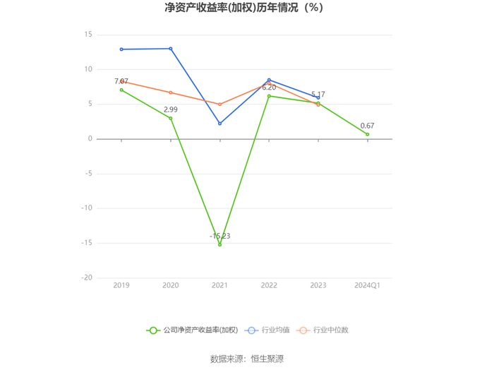 数据显示,2024年第一季度公司加权平均净资产收益率为0.67%,较上年同期下降0.63个百分点;公司2024年第一季度投入资本回报率为0.58%,较上年同期下降0.61个百分点。