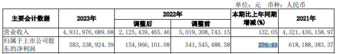 挖贝网4月30日,广汇物流 近日发布2023年年度报告,报告期内公司实现营业收入4,931,976,689.68元,同比增长132.05%;归属于上市公司股东的净利润583,338,924.39元,同比增长276.43%。