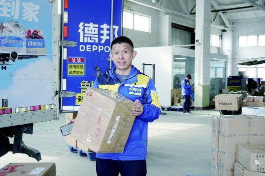 今年38岁的代小虎是德邦快递的一名快递员,工作中的他身穿深蓝色工作服,笑起来有一些腼腆。“联系用户、确认在家、送货上门”,这三件事浓缩了代小虎入职10年来的工作日常。