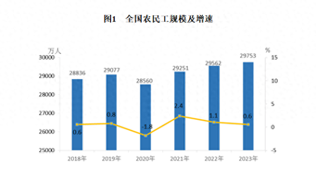 2023年全国农民工总量29753万人,比上年增加191万人,增长0.6%。其中,本地农民工12095万人,比上年减少277万人,下降2.2%;外出农民工17658万人,比上年增加468万人,增长2.7%。年末在城镇居住的进城农民工12816万人。