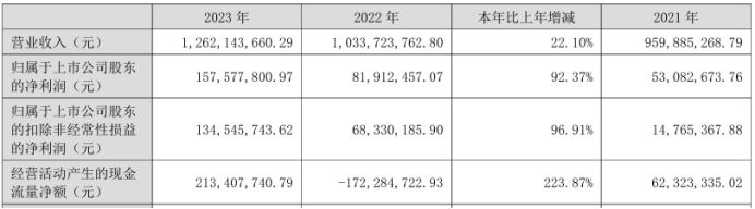 挖贝网4月30日,恒宝股份 近日发布2023年年度报告,报告期内公司实现营业收入1,262,143,660.29元,同比增长22.10%;归属于上市公司股东的净利润157,577,800.97元,同比增长92.37%。