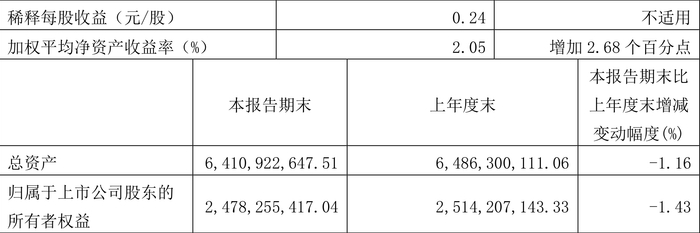 数据显示,2024年第一季度公司加权平均净资产收益率为2.05%,较上年同期增长2.68个百分点;公司2024年第一季度投入资本回报率为1.17%,较上年同期增长1.43个百分点。