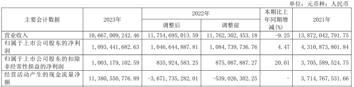 公告披露显示,董事会决议通过的本报告期利润分配预案或公积金转增股本预案:以2023年末总股本4,812,931,457股为基数,按每10股向全体股东分配现金红利人民币1.14元(含税),共计分配现金红利人民币548,674,186.10元。上述利润分配预案尚待公司股东大会批准。