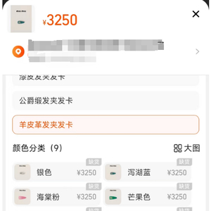 Miu Miu售价3250元的羊皮革发夹均为“缺货” 图源:Miu Miu天猫旗舰店