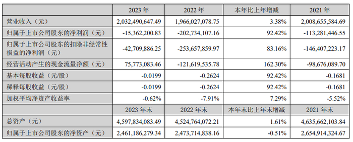 挖贝网4月30日,雪人股份近日发布2023年年度报告,报告期内公司实现营业收入2,032,490,647.49元,同比增长3.38%;归属于上市公司股东的净利润-15,362,200.83元,同比亏损减少。
