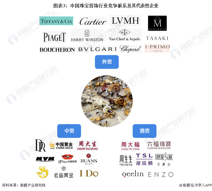 中国珠宝首饰行业竞争派系可根据入局资本的不同分为:外资、中资和港资三大派系,其中,外资的代表性企业较多且多为国际大企业,或表明外资珠宝首饰企业在先前大量涌入中国市场,布局其中。且从外资企业的珠宝产品来看,其在华布局的产品主要针对的是中国珠宝首饰需求市场的中高端人群,而中资和港资的产品定位则更为广泛,覆盖多段消费人群。