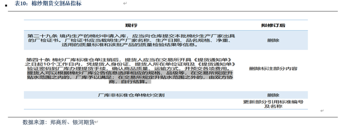 将允许注册成为期货仓单棉纱的生产日期由180以内天缩短为120天以内。对生产日期的要求收紧,是为了更好的控制质量,结合现货来看调整后也比较符合实际情况,对质量也有保障,也能减少一些交割纠纷。