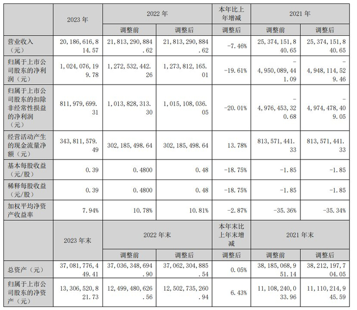 挖贝网4月30日,金螳螂(002081)近日发布2023年年度报告,报告期内公司实现营业收入20,186,616,814.57元,同比减少7.46%;归属于上市公司股东的净利润1,024,076,199.78元,同比减少19.61%。