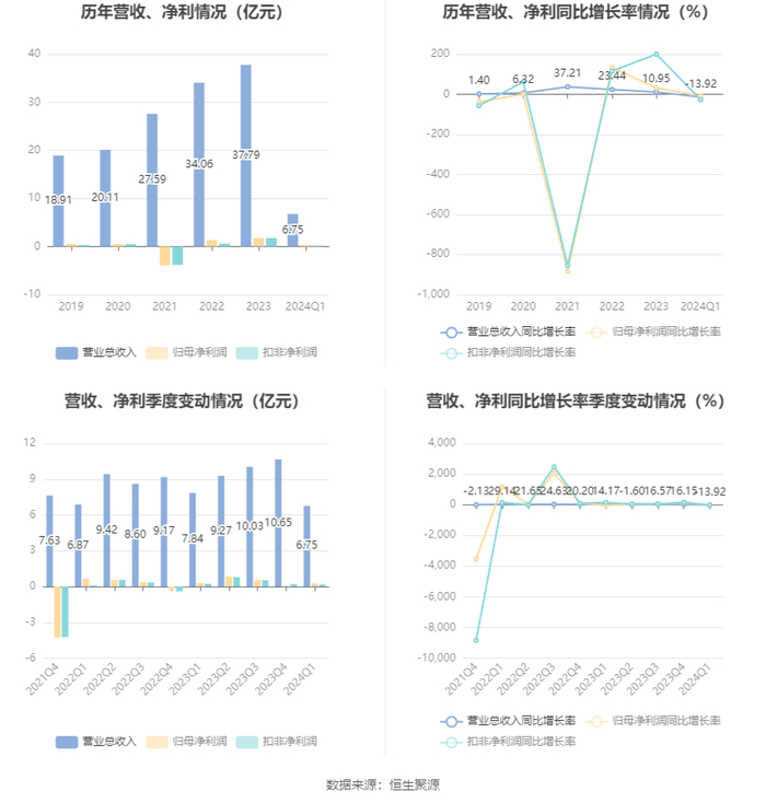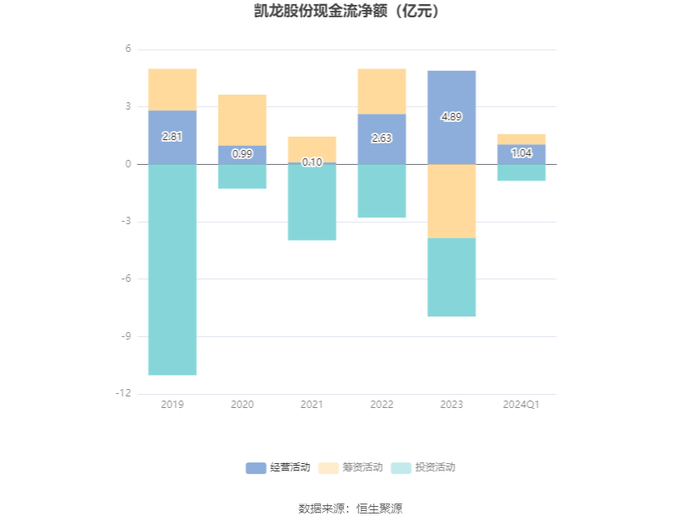 2024年第一季度,公司经营活动现金流净额为1.04亿元,同比增长150.24%;筹资活动现金流净额5389.58万元,同比减少6090.71万元;投资活动现金流净额-8566.87万元,上年同期为-2.38亿元。