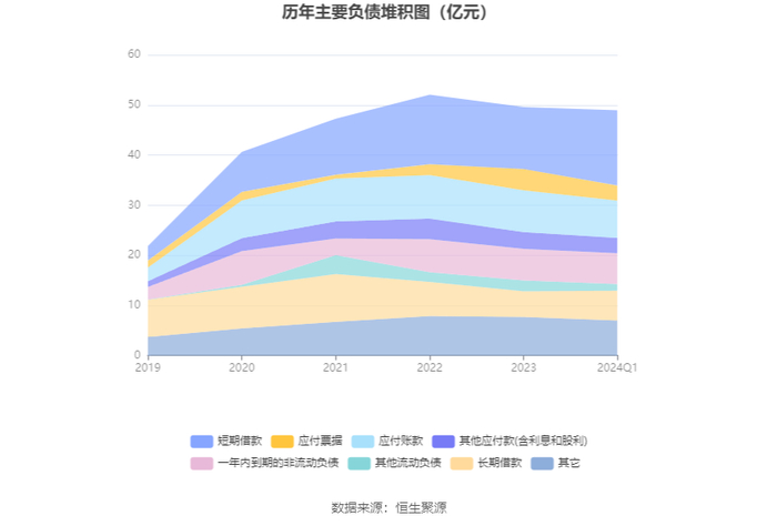负债重大变化方面,截至2024年一季度末,公司短期借款较上年末增加21.90%,占公司总资产比重上升3.69个百分点;应付票据较上年末减少29.89%,占公司总资产比重下降1.69个百分点;应付账款较上年末减少10.79%,占公司总资产比重下降1.17个百分点;其他流动负债较上年末减少39.38%,占公司总资产比重下降1.14个百分点。