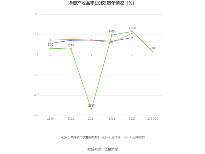 数据显示,2024年第一季度公司加权平均净资产收益率为1.69%,较上年同期下降0.34个百分点;公司2024年第一季度投入资本回报率为1.15%,较上年同期下降0.25个百分点。