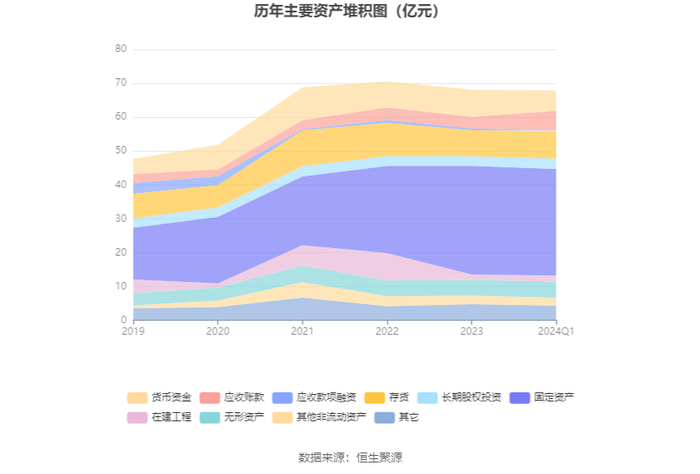 资产重大变化方面,截至2024年一季度末,公司应收账款较上年末增加71.18%,占公司总资产比重上升3.59个百分点;货币资金较上年末减少25.36%,占公司总资产比重下降2.97个百分点;固定资产较上年末减少1.94%,占公司总资产比重下降0.74个百分点;存货较上年末增加5.94%,占公司总资产比重上升0.71个百分点。
