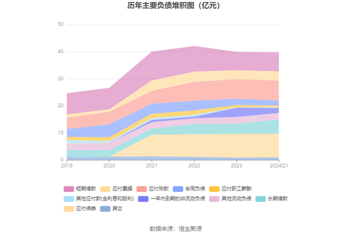 负债重大变化方面,截至2024年一季度末,公司一年内到期的非流动负债较上年末减少43.97%,占公司总资产比重下降2.20个百分点;长期借款较上年末增加39.99%,占公司总资产比重上升2.23个百分点;合同负债较上年末减少18.68%,占公司总资产比重下降0.63个百分点;应付职工薪酬较上年末减少35.80%,占公司总资产比重下降0.41个百分点。