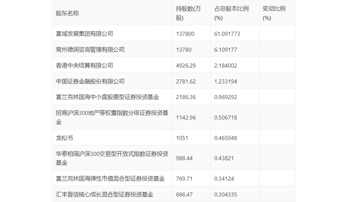 一季报显示,2024年一季度末公司十大流通股东中,新进股东为华泰柏瑞沪深300交易型开放式指数证券投资基金、富兰克林国海弹性市值混合型证券投资基金、汇丰晋信核心成长混合型证券投资基金,取代了上年末的正心谷(檀真)价值中国专享私募证券投资基金、陈世辉、汇丰晋信低碳先锋股票型证券投资基金。在具体持股比例上,香港中央结算有限公司、富兰克林国海中小盘股票型证券投资基金持股有所上升,招商沪深300地产等权重指数分级证券投资基金、龙松书持股有所下降。