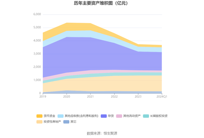 资产重大变化方面,截至2024年一季度末,公司投资性房地产较上年末增加0.31%,占公司总资产比重上升0.62个百分点;货币资金较上年末减少5.91%,占公司总资产比重下降0.22个百分点;其他流动资产较上年末减少6.78%,占公司总资产比重下降0.22个百分点;存货较上年末减少1.87%,占公司总资产比重下降0.10个百分点。