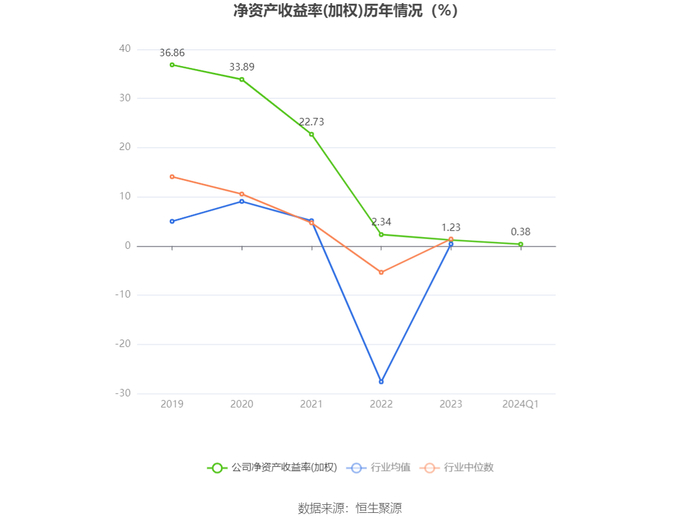 数据显示,2024年第一季度公司加权平均净资产收益率为0.38%,较上年同期下降0.72个百分点;公司2024年第一季度投入资本回报率为0.49%,较上年同期下降0.24个百分点。