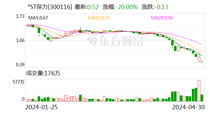 *ST保力表示,截至2024年4月29日,股票收盘价连续十个交易日低于1元,公司股票存在可能因股价低于面值被终止上市的风险。