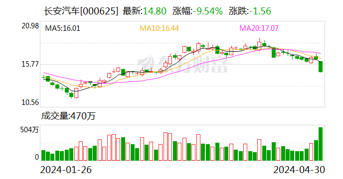 1000多亿市值的长安汽车,一季度业绩暴降,今天上午盘中触及跌停,上午收盘大跌9.23%。2024年一季度,长安汽车营业收入为370.23亿元,同比增长7.14%;归母净利润为11.58亿元,同比下降83.39%。
