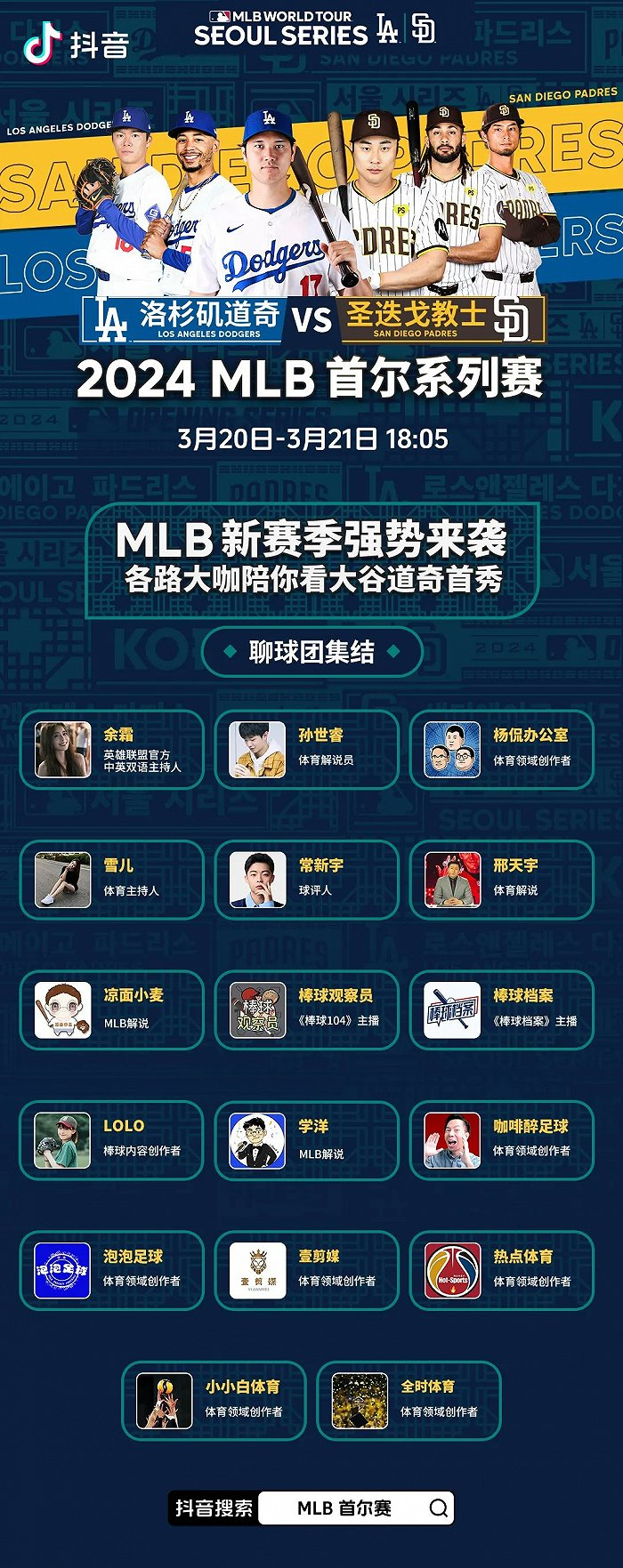 据悉,MLB邀请了包含余霜,杨毅办公室,孙世睿等非棒球领域的社交达人来到线上,和专业棒球解说一起聊球,带给大家更多的选择,通过这些达人触达非棒球粉丝,让这些达人带着自己的粉丝一起了解熟悉棒球。同时后续还会联合抖音上线抖音解说招募活动,邀请所有对棒球感兴趣的朋友来到麦克风前,展现自己的才华和热爱。