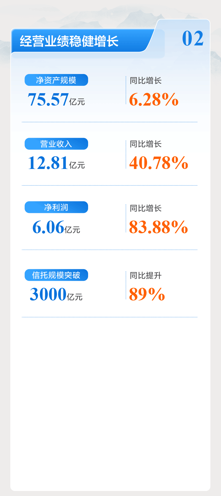 4月30日,中粮信托发布最新年报显示,2023年中粮信托实现营收12.81亿元,同比增长40.78%;同期,实现净利6.06亿元,同比增长83.88%。截至2023年末,中粮信托净资产规模达75.57亿元,同比增长6.28%。