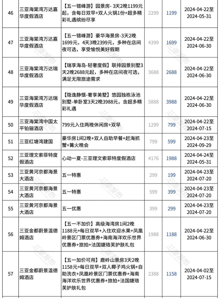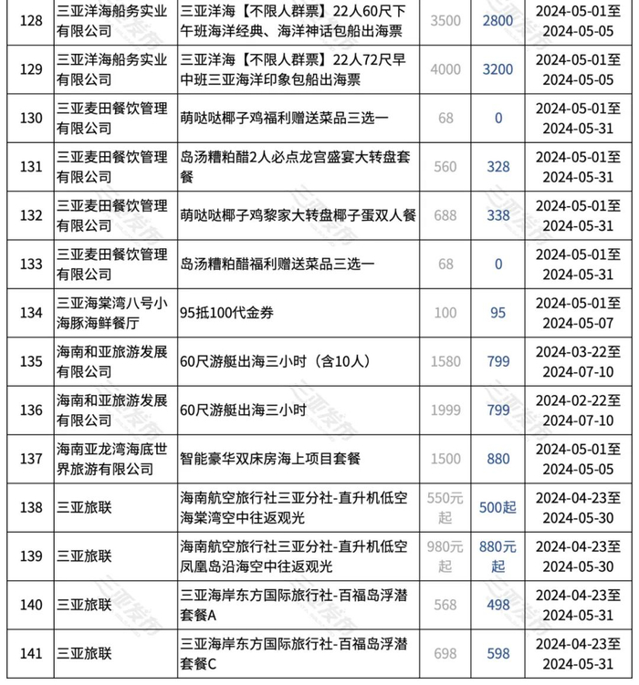 5月1日至5日期间,天涯海角游览区结合热门产品海上观光艇推出“海上游天涯”特惠套票,其中“帆船+海上游天涯+游览车”套票活动价为188元/人,还推出568元/人天涯酷飒玩海套餐,包含门票+游览车+玩海套票(摩托艇+大飞鱼+网箱海钓+小飞鱼+游艇出海)+书局咖啡。此外,天涯书局、天涯婚庆、品牌餐饮门店还推出系列“五一”专题特惠,低至5到8折。