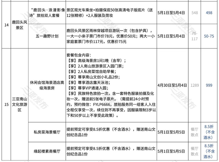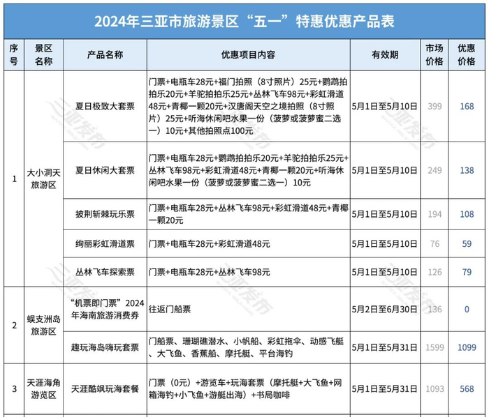 “五一”小长假期间,三亚大小洞天旅游区在OTA平台推出“夏日大套票”等多种优惠套餐。同时,崖州区本地居民可凭身份证/户口本/居住证,到线下售票窗口享受部分项目优惠福利。