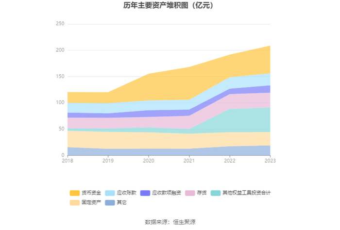 资产重大变化方面,截至2023年年末,公司货币资金较上年末增加21.86%,占公司总资产比重上升2.69个百分点;固定资产较上年末减少6.03%,占公司总资产比重下降1.91个百分点;应收款项融资较上年末增加34.77%,占公司总资产比重上升1.28个百分点;存货较上年末增加0.26%,占公司总资产比重下降1.16个百分点。