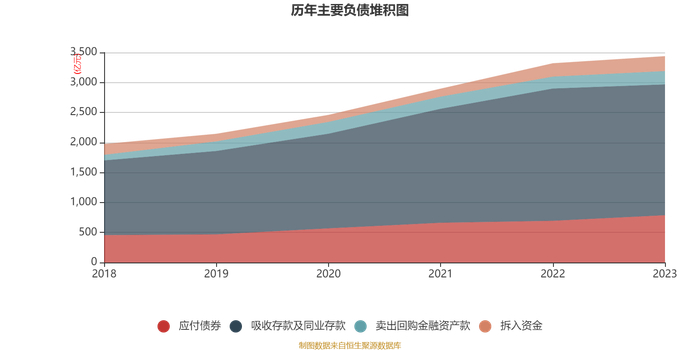 负债重大变化方面,截至2023年末,公司吸收存款及同业存款较上年末减少1.12%,占公司总资产比重下降3.59个百分点;应付债券较上年末增加13.37%,占公司总资产比重上升1.45个百分点;向中央银行借款较上年末增加36.21%,占公司总资产比重上升0.71个百分点;拆入资金较上年末增加11.45%,占公司总资产比重上升0.35个百分点。