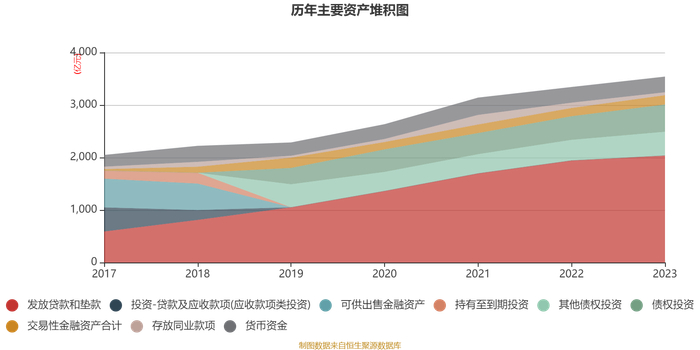 资产重大变化方面,截至2023年末,公司买入返售金融资产较上年末减少30.21%,占公司总资产比重下降1.46个百分点;存放同业款项较上年末减少43.25%,占公司总资产比重下降1.25个百分点;债权投资较上年末增加15.32%,占公司总资产比重上升1.16个百分点;拆出资金较上年末增加38%,占公司总资产比重上升1.16个百分点。