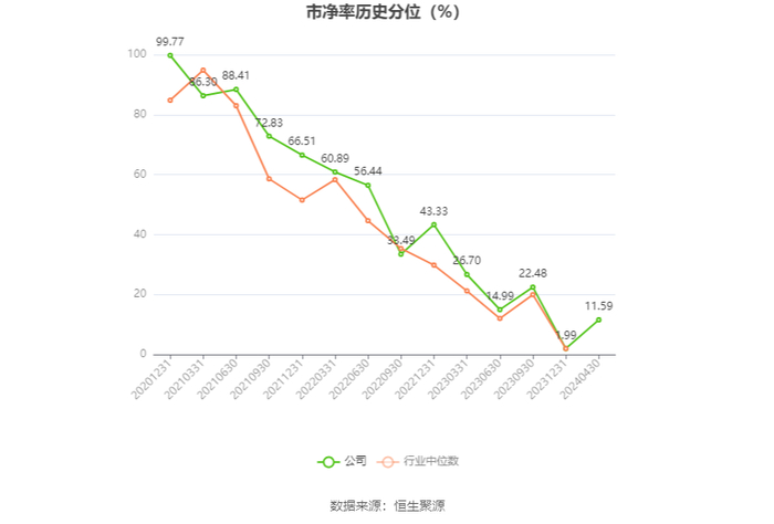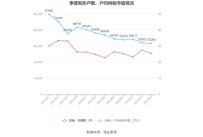 筹码集中度方面,截至2023年年末,公司股东总户数为5.23万户,较三季度末下降了639户,降幅1.21%;户均持股市值由三季度末的27.68万元下降至25.59万元,降幅为7.55%。