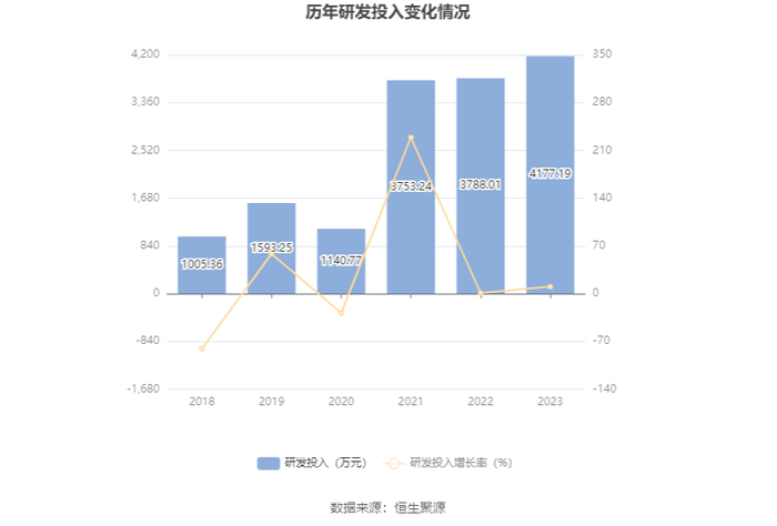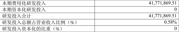 2023年全年,公司研发投入金额为4177.19万元,同比增长10.27%;研发投入占营业收入比例为0.58%,相比上年同期上升0.01个百分点。此外,公司全年研发投入资本化率为0。