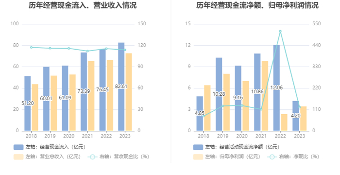 2023年,公司营业收入现金比为113.77%,净现比为121.92%。