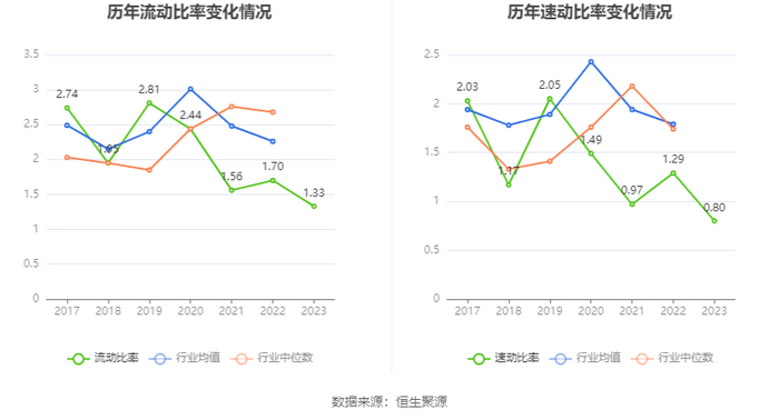 2023年,公司流动比率为1.33,速动比率为0.80。