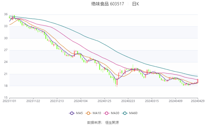 以4月29日收盘价计算,绝味食品目前市盈率(TTM)约为35.47倍,市净率(LF)约为1.77倍,市销率(TTM)约为1.68倍。