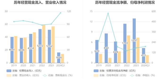 2024年第一季度,公司营业收入现金比为117.09%,净现比为190.88%。