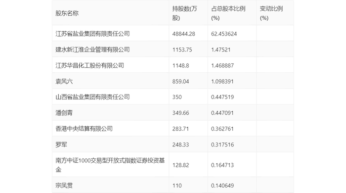 一季报显示,2024年一季度末公司十大流通股东中,新进股东为南方中证1000交易型开放式指数证券投资基金,取代了上年末的向上。在具体持股比例上,江苏华昌化工股份有限公司、袁风六、潘剑青、香港中央结算有限公司持股有所上升。