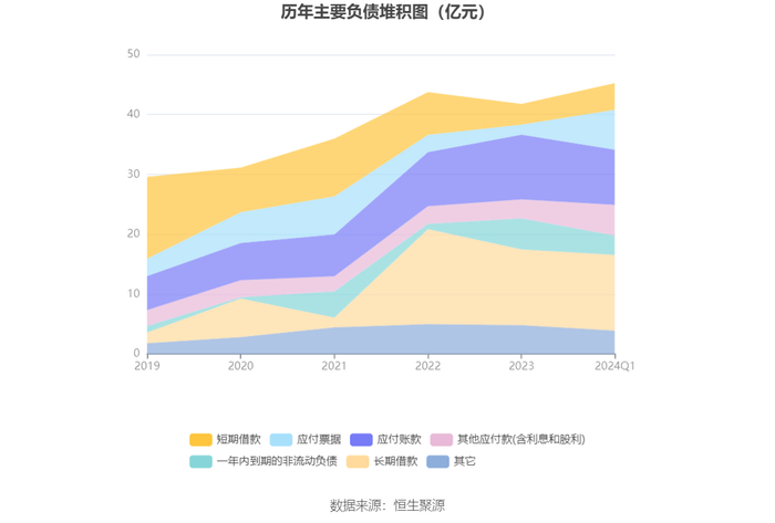 负债重大变化方面,截至2024年一季度末,公司应付票据较上年末增加295.58%,占公司总资产比重上升4.56个百分点;其他应付款(含利息和股利)较上年末增加63.62%,占公司总资产比重上升1.69个百分点;一年内到期的非流动负债较上年末减少38.28%,占公司总资产比重下降2.16个百分点;应付账款较上年末减少14.79%,占公司总资产比重下降2.10个百分点。
