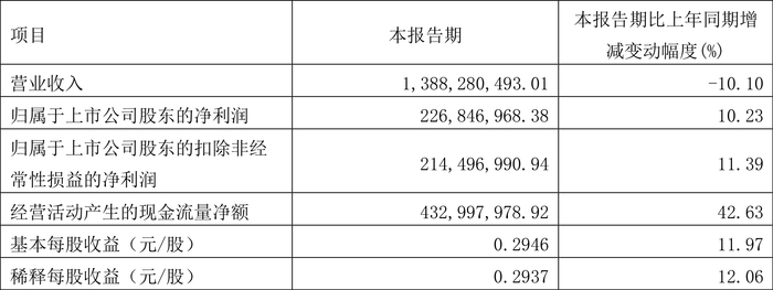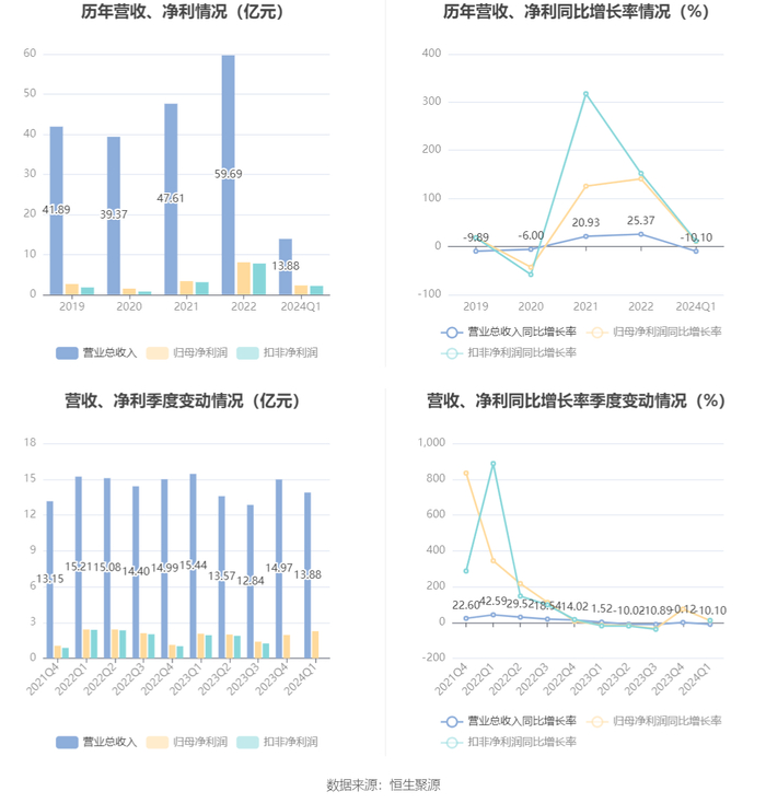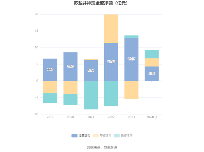 2024年第一季度,公司经营活动现金流净额为4.33亿元,同比增长42.63%,主要系报告期销售商品收到现金较同期增加所致;筹资活动现金流净额2.45亿元,同比增加3858.62万元;投资活动现金流净额2.52亿元,上年同期为1260.15万元。