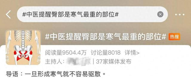 臀部是个相对隐私的部位,平常不太受到“重视”。但4月30日“臀部是人体寒气最重”这一话题冲上热搜后,还是引起了网友们的热烈讨论。