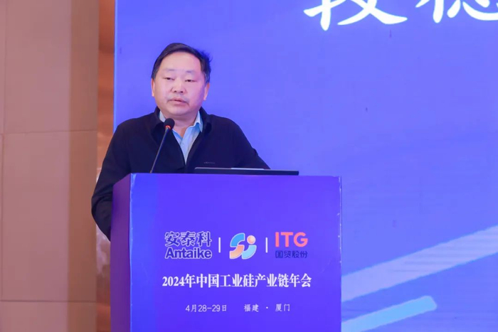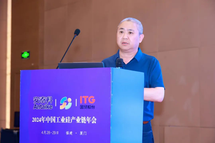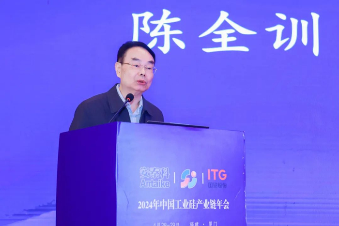 4月29日,2024年中国工业硅产业链年会在厦门召开。中国有色金属工业协会顾问、原会长陈全训出席会议并致辞,中国有色金属工业协会党委常委、副会长兼秘书长段德炳出席会议并主持会议开幕式。此次会议出席的嘉宾还有,广州期货交易所副总经理曹子海,厦门国贸集团股份有限公司总裁蔡莹彬,中国有色金属工业协会硅业分会常务副会长、有色金属技术经济研究院有限公司党委书记、执行董事林如海,中国有色金属工业协会硅业分会副会长兼秘书长、北京安泰科信息股份有限公司总经理徐爱华,福建省冶金工业协会硅业分会会长江远金,合盛硅业股份有限公司副总经理张少特,国泰君安期货有限公司副总裁闻勇翔等。