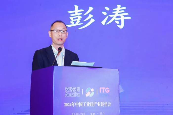 中国有色金属工业协会稀有稀土部主任彭涛主持产业发展研讨会环节。林如海、广州期货交易所商品事业部执行经理王新超、厦门国贸有色矿产有限公司总经理林海宇分别作了《我国“硅能源”产业发展现状与展望》《工业硅期货业务细则修改情况介绍》《企业利用期货衍生工具的基本方法与典型案例》专题报告。