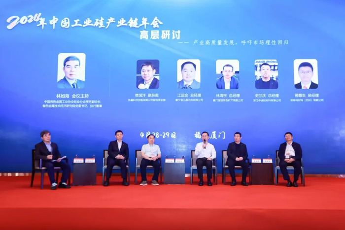 大会还设置了高层研讨、工业硅产业技术应用研讨、工业硅市场供需研讨环节,林海宇,浙江中诚硅材料有限公司总经理史兰庆,泰宁县三晶光电有限公司总经理江远金,埃肯硅材料(兰州)有限公司总经理蒋赣生,协鑫科技控股有限公司硅粉事业部副总裁樊国洋等嘉宾围绕“产业高质量发展,呼吁市场理性回归”话题进行充分交流。