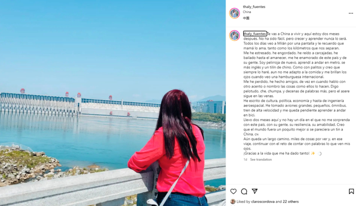 古巴记者Thalía Fuentes在三峡大坝前留影,并在个人社交平台配文:“在这里,长江的水是如此清澈,鱼儿在里面游泳。我们本来担心工业生产对环境有所影响,但并没有。我们要向中国学习,要有发展清洁能源,发展绿色工业的决心!”