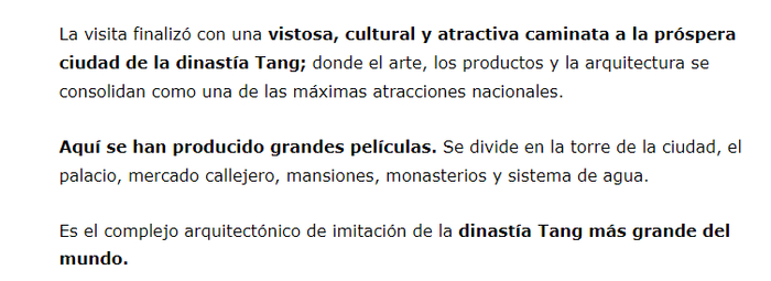 尼加拉瓜记者Édgar Daniel在当地主流媒体TN8电视台官网上写道:这次访问中,唐城里丰富多彩的民俗表演,气势恢宏的古典建筑都让我印象深刻,我觉得这里简直是世界上最伟大的景点之一!