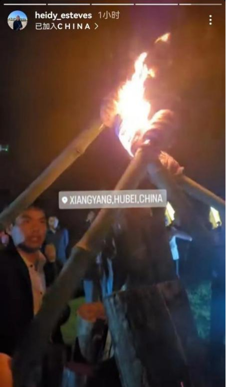 (乌拉圭记者 Heidy Esteves Acuña在Instagram上分享点燃篝火的时刻)