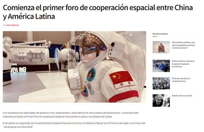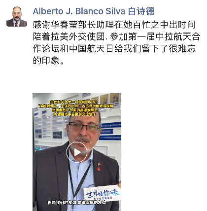 阿根廷记者Fernando Enrique Capotondo报道了中拉航天合作论坛发布的《武汉宣言》,称本次国际活动有利于各方建立空间伙伴关系,共享技术造福人类,以及共同构建中国与拉美和加勒比国家国际空间合作高水平平台。